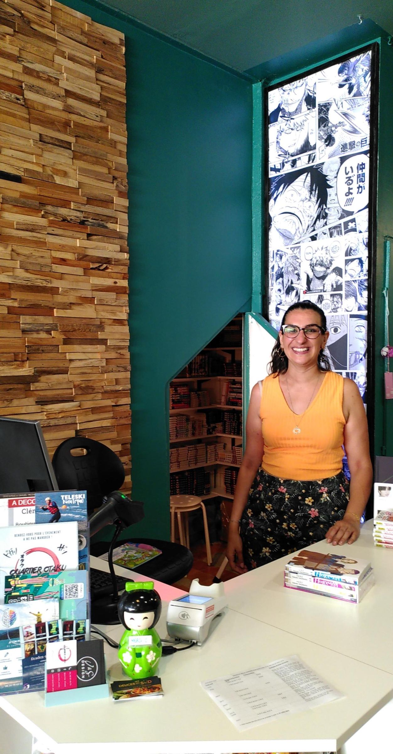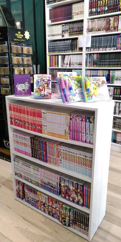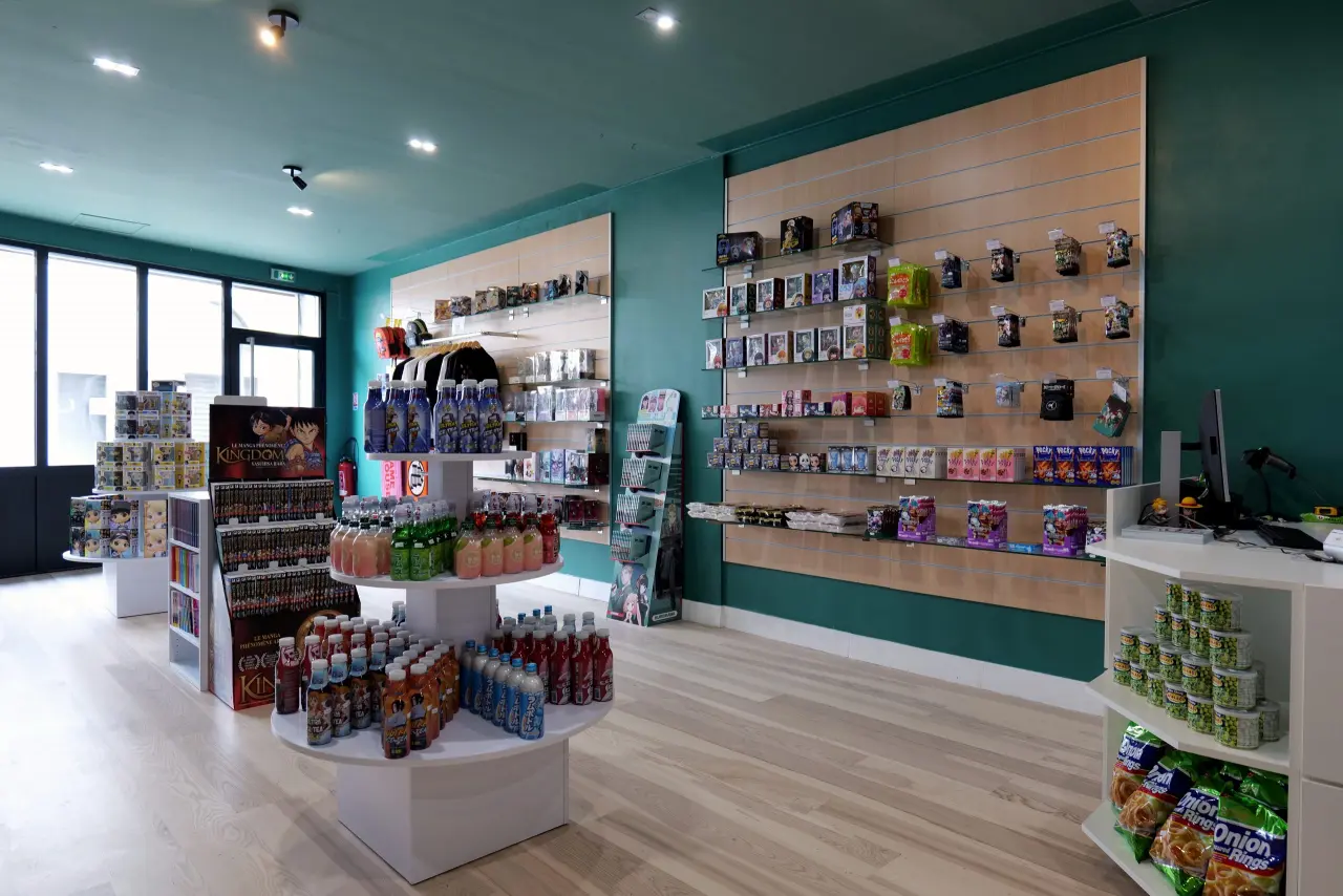 Puisque le lieu s’appelle Quartier OTAKU (qui désigne au Japon une personne se consacrant à des activités mangas, dessins animés, jeux vidéo), il a été aménagé par “divisions” distinctes et propose des ilots avec des figurines et des produits dérivés (cartables, sweats, cartes Pokémons japonaises…), du snacking/boissons et des articles de KPOP et JPOP. Avec un chiffre d’affaires 50/50 entre livres et goodies, le panier moyen se situe à 25 €. PassCulture actionné, les jeunes lecteurs sont nombreux et se sentent “comme chez eux”.