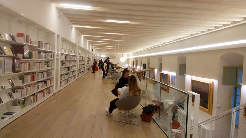 Dès le vestibule, surprise ! Des tableaux restaurés - les donatifs de Carpentras - ornent les murs jusqu’au plafond. Et du monde partout : des famille le nez en l’air pour admirer des tableaux du 19e siècle ou des sculptures de marbre ; des enfants lovés dans d’immenses coussins ou cachés sous le château-table de l’espace jeunesse ; des retraités, journaux à la main, enfoncés dans des chaises design ; une file d’attente devant la banque de retrait, bras chargés de DVD, livres et magasines ; des adolescents qui enchaînent les parties de jeux vidéo sur grand écran avec en fond sonore “Les Quatre Saisons” de Vivaldi ; des étudiants venus faire leurs devoirs sur les grandes tables ensoleillées… et même un robot qui salue les visiteurs ! Il fait hélas trop froid pour paresser sur la grande terrasse du premier étage et admirer la vue sur les faubourgs de Carpentras et le majestueux Mont-Ventoux.