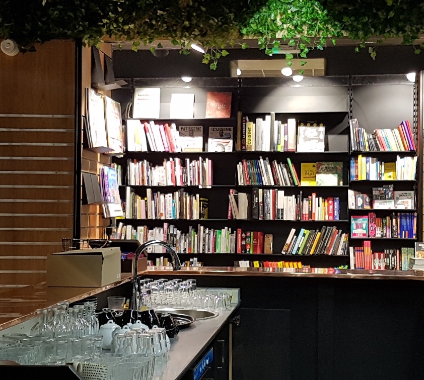 Au rez-de-chaussée, trois pièces divisent l’espace. La première est dévolue à la librairie généraliste, la deuxième aux livres anglais et à la jeunesse (plus de 10 000 titres disponibles), la troisième à l’espace restaurant. L’étage, qui sert actuellement de réserve, promet de beaux projets complémentaires.