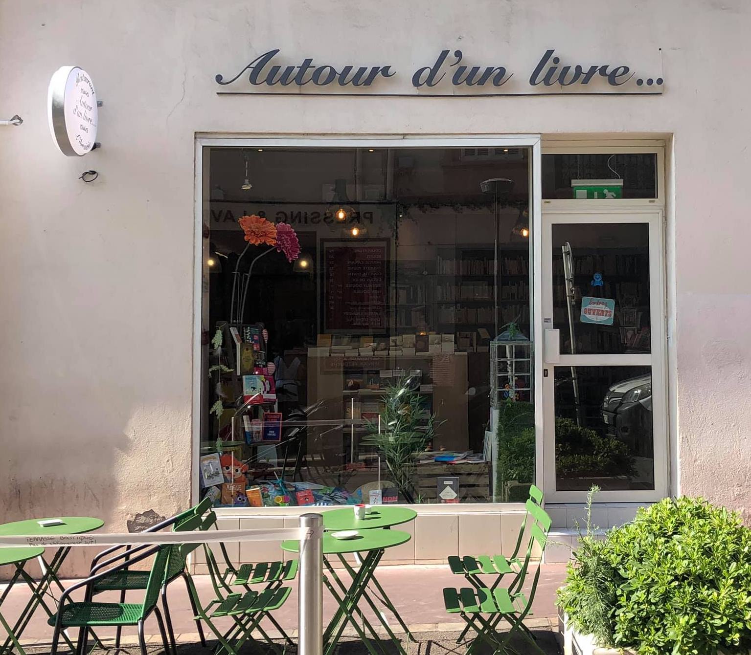 Librairie-salon de thé ouverte en mai 2017 par Florence Kammermann, Autour d’un livre a déménagé rue Jean Jaurès le 2 juillet 2019, passant de 45 m2 à 180 m2 répartis sur deux étages.