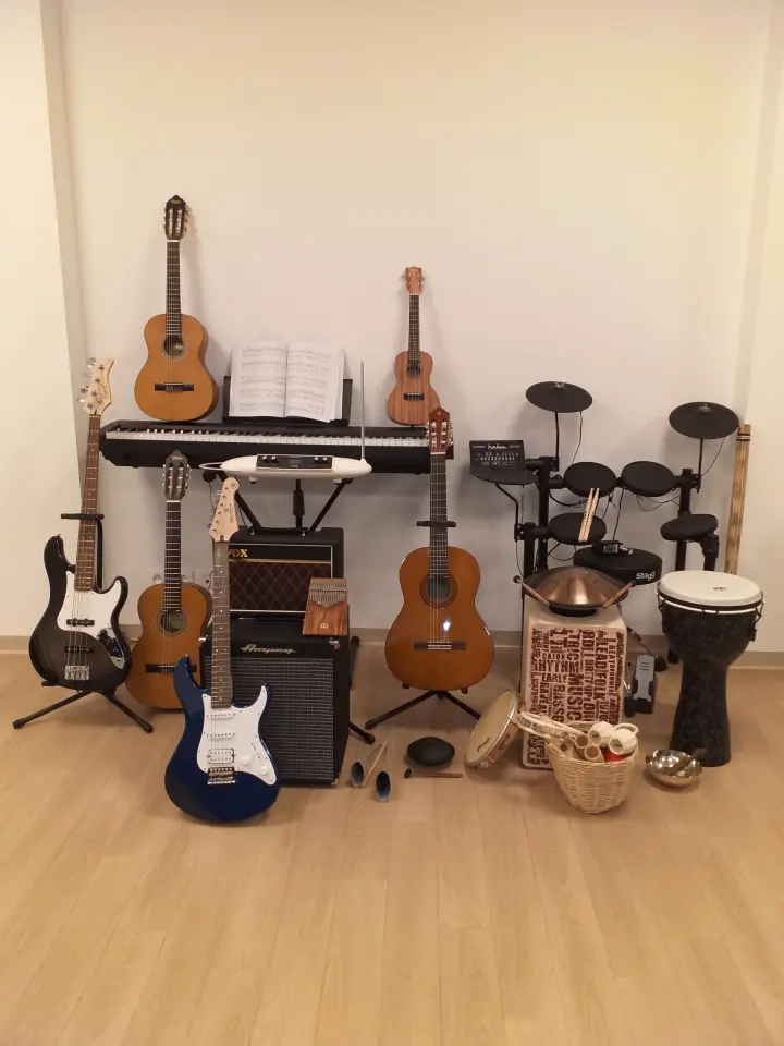 Envie de vous initier ou de progresser dans votre pratique ? Une collection de 31 instruments vous attend : guitares classiques et électriques, claviers numériques, batterie électronique, etc. D’autres comme les percussions, tambourins, maracas, xylophones, carillon, claves…, sont plus spécifiquement mis à disposition pour les jeunes enfants et l’éveil musical.