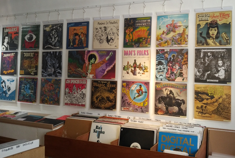 L’activité du disquaire occupe environ un tiers du local, notamment la partie autrefois destinée aux expositions. La surface dédidée à la vente de livres n’a pas changé, et les murs restent disponibles pour les expositions.