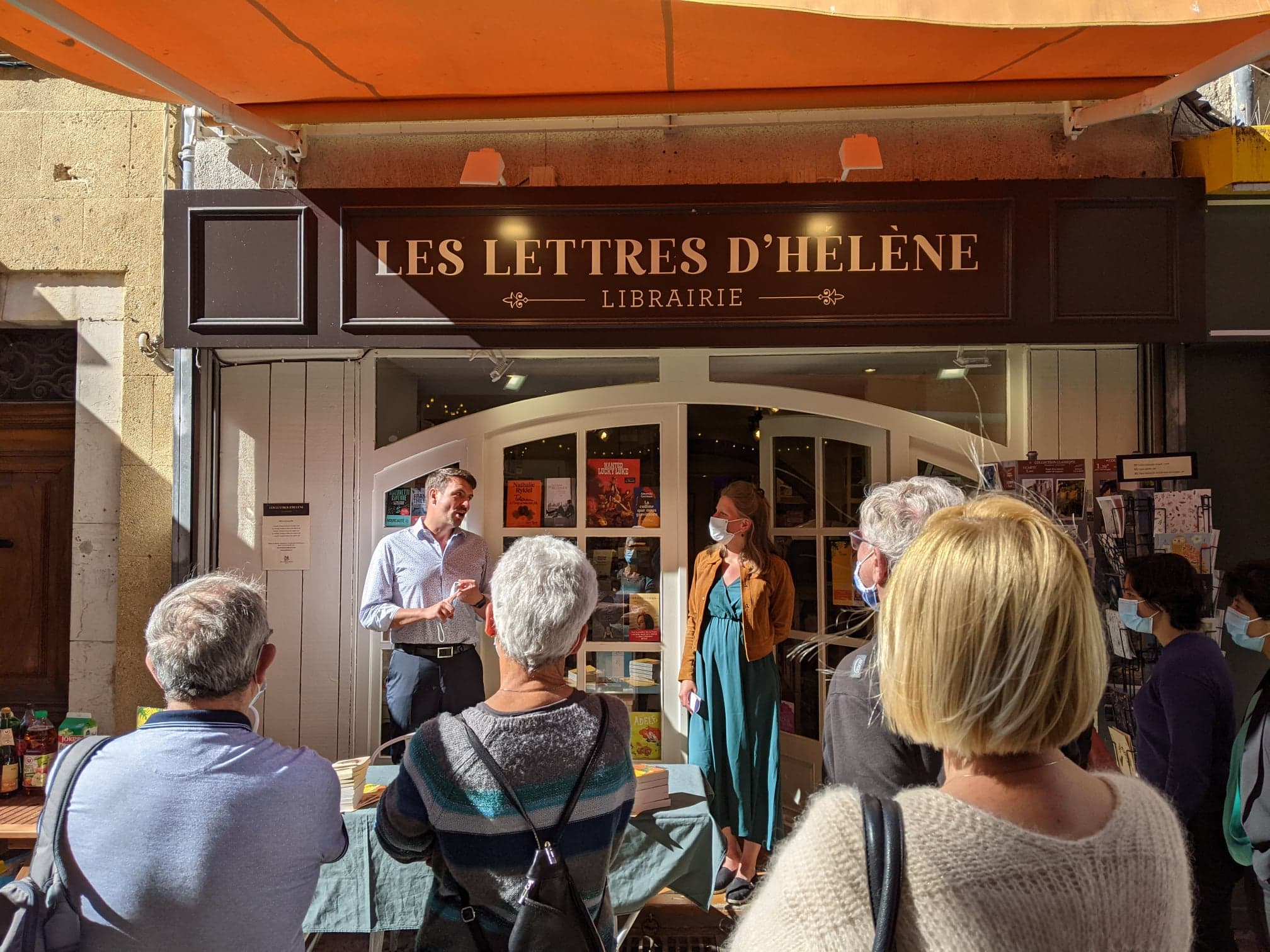 Si des rencontres d’auteurs locaux et des ateliers de bandes dessinées ont déjà été organisées aux Lettres d’Hélène, la libraire souhaite recevoir plus d’auteurs nationaux. Une rencontre avec l’auteur franco-britannique Olivier Dorchamps a d’ailleurs eu lieu en mai 2021. L’évènement s’est déroulé dans le cadre du Prix littéraire 2021 des lycéens et apprentis de la région Sud qui comptait dans sa sélection le roman Ceux que je suis.