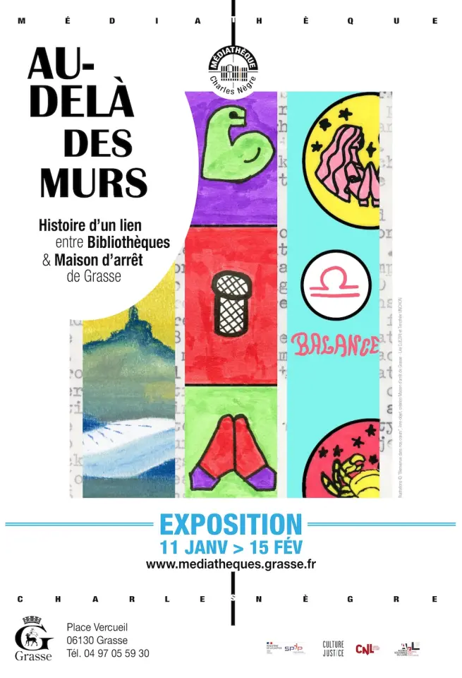 Depuis le 11 janvier, la Médiathèque Charles Nègre accueille l’exposition « Au-delà des murs » qui invite à découvrir des récits de vie personnels livrés par des détenus dans le cadre du projet “Bienvenue dans nos cœurs”. Dessins, mots, pensées pour les proches s’entremêlent autour des thématiques intimes de la parentalité et de la famille. Ce projet, soutenu par l’Agence régionale du Livre Provence-Alpes-Côte d’Azur, s’inscrit dans un partenariat historique entre Bibliothèques et Maison d’Arrêt de Grasse, fruit d’une volonté d’ouvrir les populations carcérales aux pratiques culturelles.