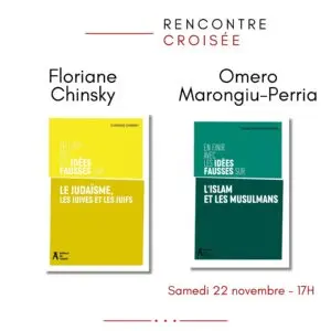 Rencontre croisée et dédicace sur avec l’autrice Floriane Chinsky pour son ouvrage En finir avec les idées fausses sur le judaïsme, les Juives et les Juifs et l’écrivain (l’Atelier, 2025) Omero Marongiu-Perria pour En finir avec le sidées fausses sur l’islam et les musulmans (l’Atelier, 2025).