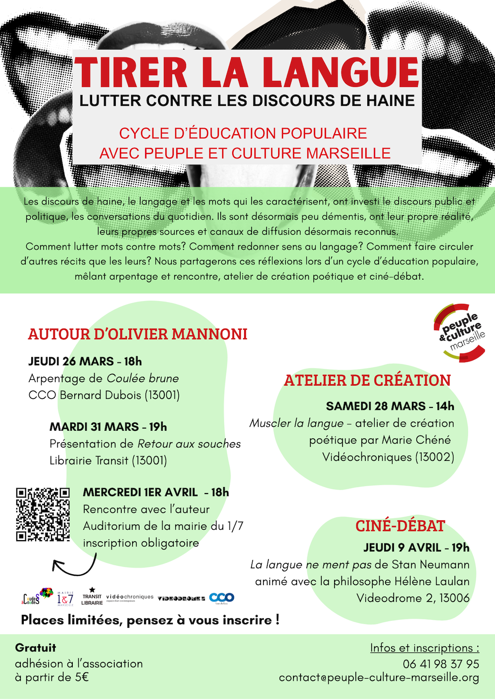 Créée à Marseille en 2003, Peuple et culture Marseille est une association d’éducation populaire mène des actions de diffusion avec différents publics, autour de la littérature et du cinéma. Elle a pour objet de favoriser le partage et la co-construction des cultures et des savoirs, dans une perspective émancipatrice et de formation tout au long de la vie. Nous cherchons à construire des espaces d’échanges et de création partagés entre des publics, des artistes et des œuvres qu’elles soient littéraires, sonores ou cinématographiques.