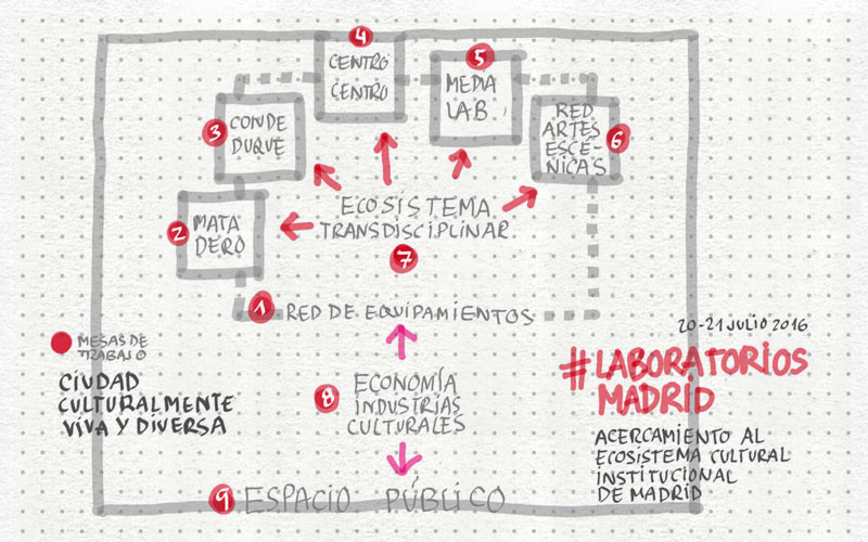 Le Medialab Prado est implanté dans le quartier des Lettres de Madrid. Il est considéré comme l’un des centres européens les plus actifs et créatifs en terme de culture numérique. Placé sous l’autorité de la ville, ce centre de recherche, de production et de diffusion se démarque par une implication forte et permanente des habitants dans les processus d’expérimentation et d’apprentissage collaboratifs. Parmi les thématiques explorées par le Medialab, la question urbaine occupe une place privilégiée, avec l’organisation régulière d’appels à projet, de workshops et conférences dans les champs de l’agriculture urbaine, de la data visualisation, des communs urbains, du patrimoine ou de l’affichage en ville. En 2015, le Medialab Prado a animé une série de workshops pour réfléchir à la conception de sa future bibliothèque. L’objectif : faire de ce lieu un « laboratoire citoyen de connaissance » à même de rassembler et de diffuser l’ensemble de la documentation et des productions du Medialab Prado.