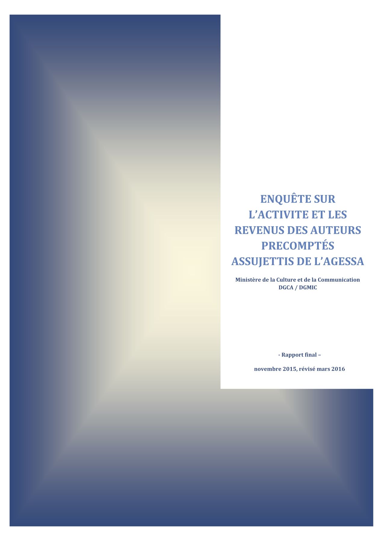 Enquête sur l'activité et les revenus des auteurs précomptés assujettis de l'Agessa