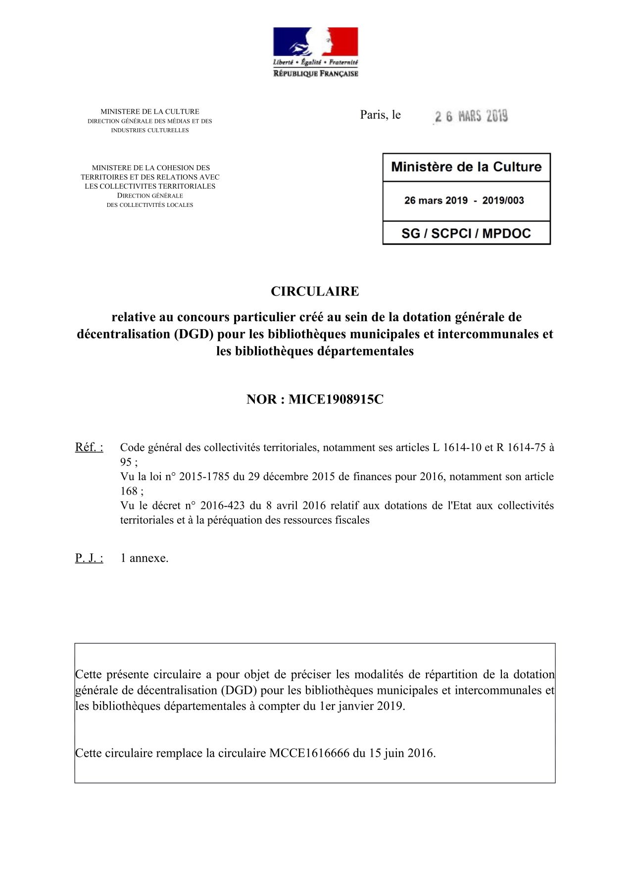Ministère de la Culture [2019]