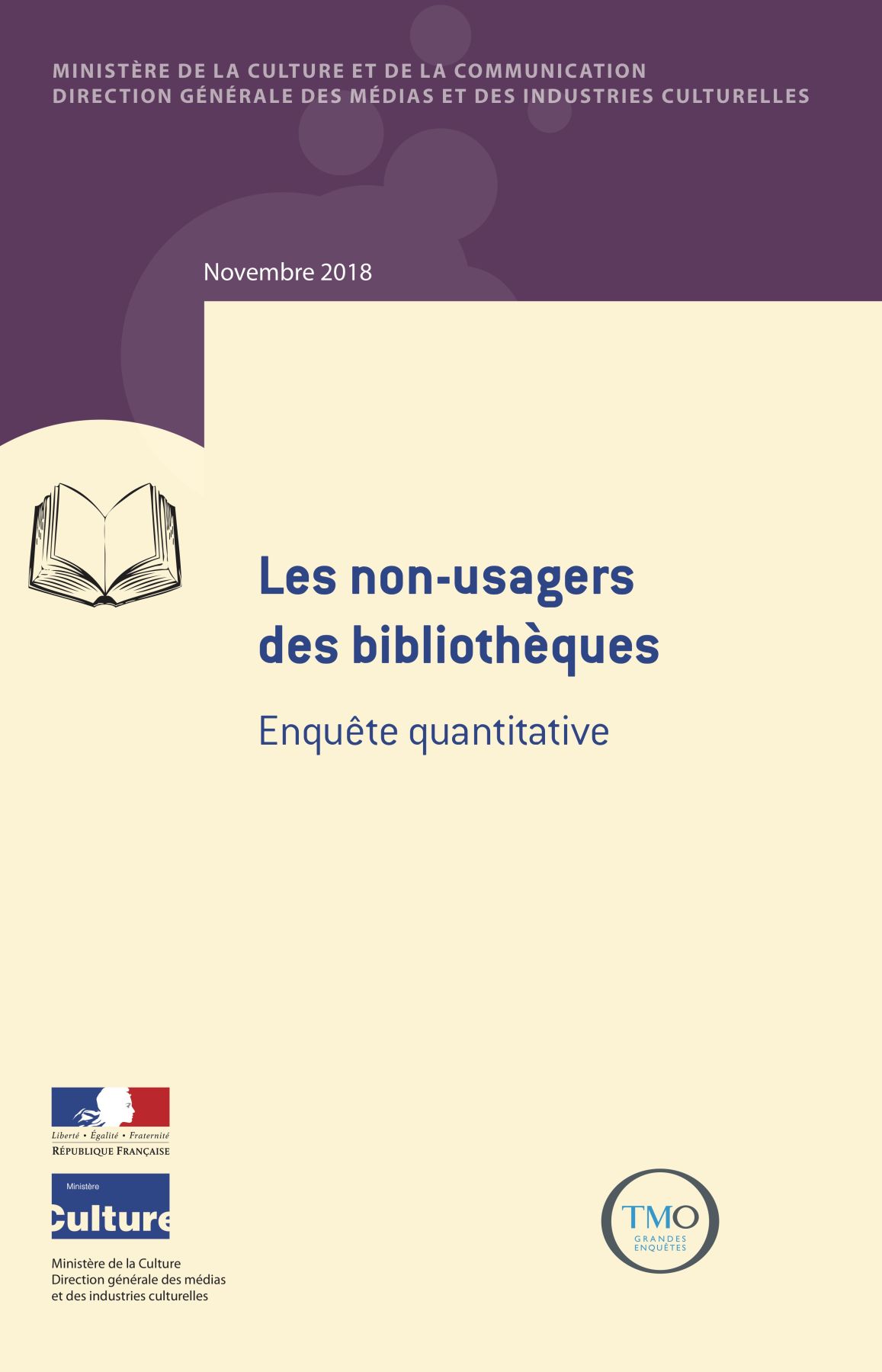 Cette étude quantitative s’appuie sur une enquête en ligne réalisée en 2018 auprès d’une population âgée de 15 ans ou plus et n’ayant pas fréquenté la bibliothèque municipale lors des 12 derniers mois (1 500 réponses). Pour prendre en compte l’ensemble de la population (en particulier les populations plus âgées éloignées d’Internet), une enquête téléphonique complémentaire a été réalisée auprès de non-usagers de 65 ans et plus (103 réponses).